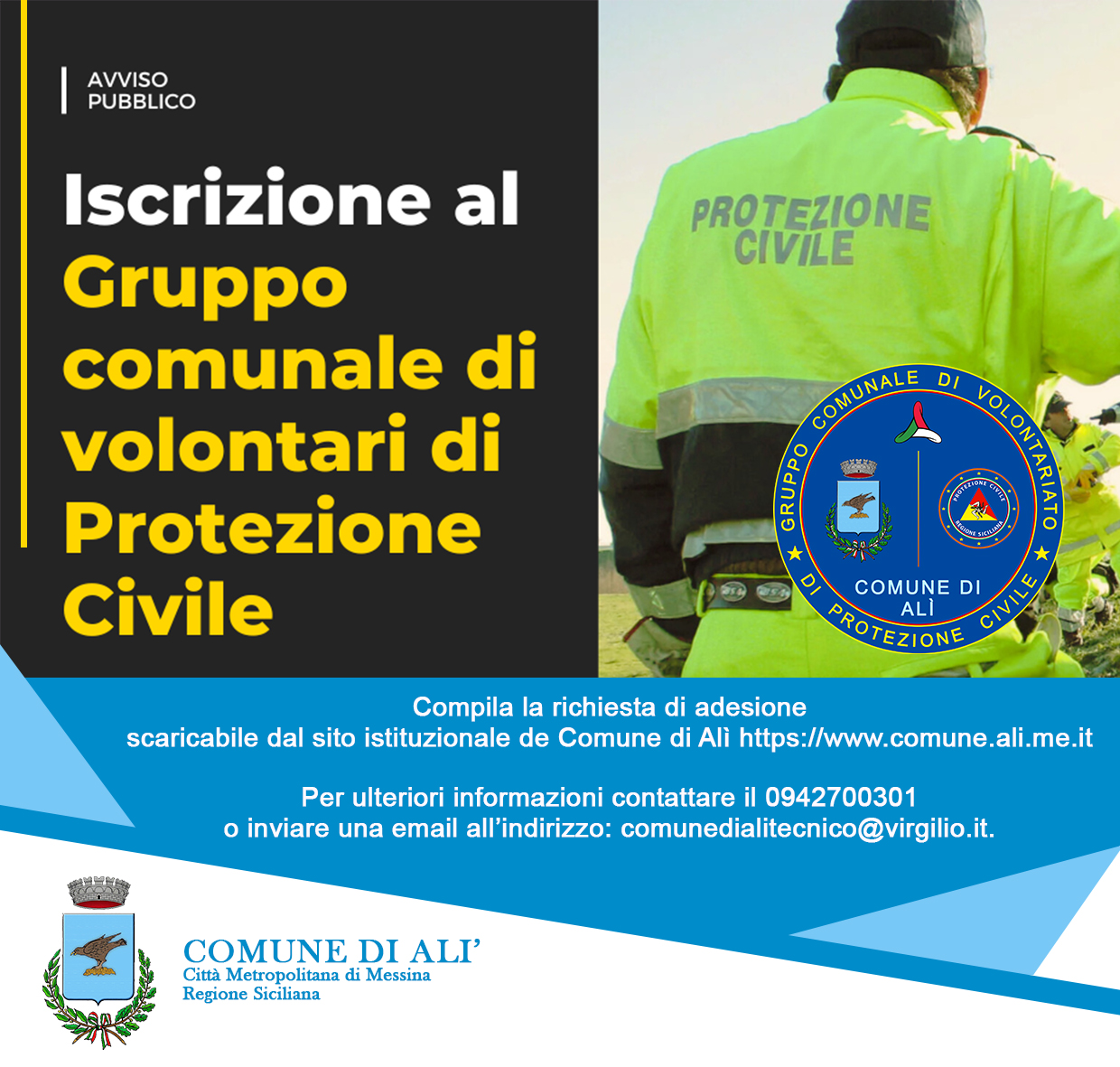 Avviso pubblico per l’iscrizione di volontari nel gruppo comunale di protezione civile di ali’